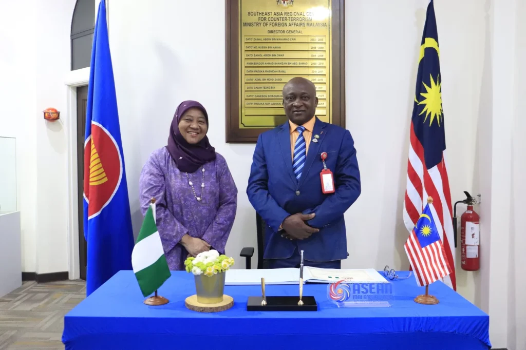 During the meeting, both sides engaged in meaningful discussions on strengthening cooperation in counter-terrorism and preventing/countering violent extremism (P/CVE). The dialogue explored issues such as non-state actors, terrorism financing, ongoing peacebuilding initiatives by SERACCT and PDRM, as well as the complex security challenges in the Tri-Borders area of Sabah and the current counter-terrorism challenges and preventive initiatives in Nigeria. It also touched on the spill-over effects of violent extremism and related cases from neighbouring countries and how best to address these cross-border concerns through greater bilateral and multilateral collaborations and knowledge-sharing.