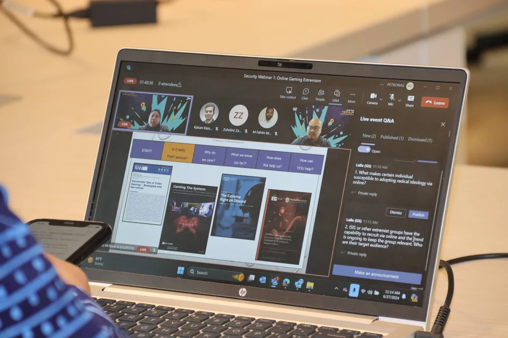 On June 27, 2024, SEARCCT was invited by Group Security Petronas to deliver a webinar titled “Online Gaming Extremism: Play or Be Played?” The session was attended by approximately 150 Petronas staff members. Mr. Kennimrod Sariburaja, Director of Research and Publications, discussed the terrorism landscape and counter-terrorism efforts in Malaysia while, Ms. Nurul Hidayah Mohd Noar, Research Officer at SEARCCT, highlighted the emerging trend of extremists exploiting gaming spaces. The webinar aimed to raise awareness about terrorism-related issues, particularly in cyberspace, and to educate communities on how they can contribute to keeping these spaces safe.